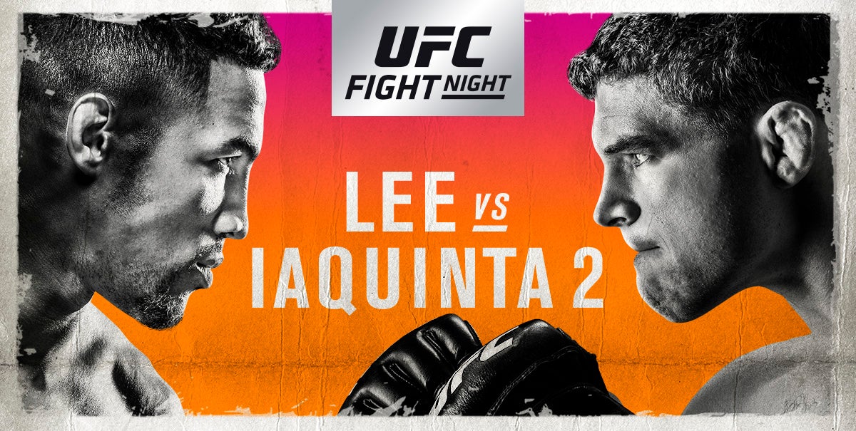 UFC FIGHT NIGHT®: LEE vs. IAQUINTA 2 will air live on FOX at 8 p.m. ET/5 p.m. PT on Saturday, Dec. 15, with the prelims kicking off the evening on FS1 at 5 p.m. ET/2 p.m. PT and on UFC FIGHT PASS® at 3:30 p.m. ET/12:30 p.m. PT. Doors open at 2:30 p.m. ET/11:30 a.m. PT.