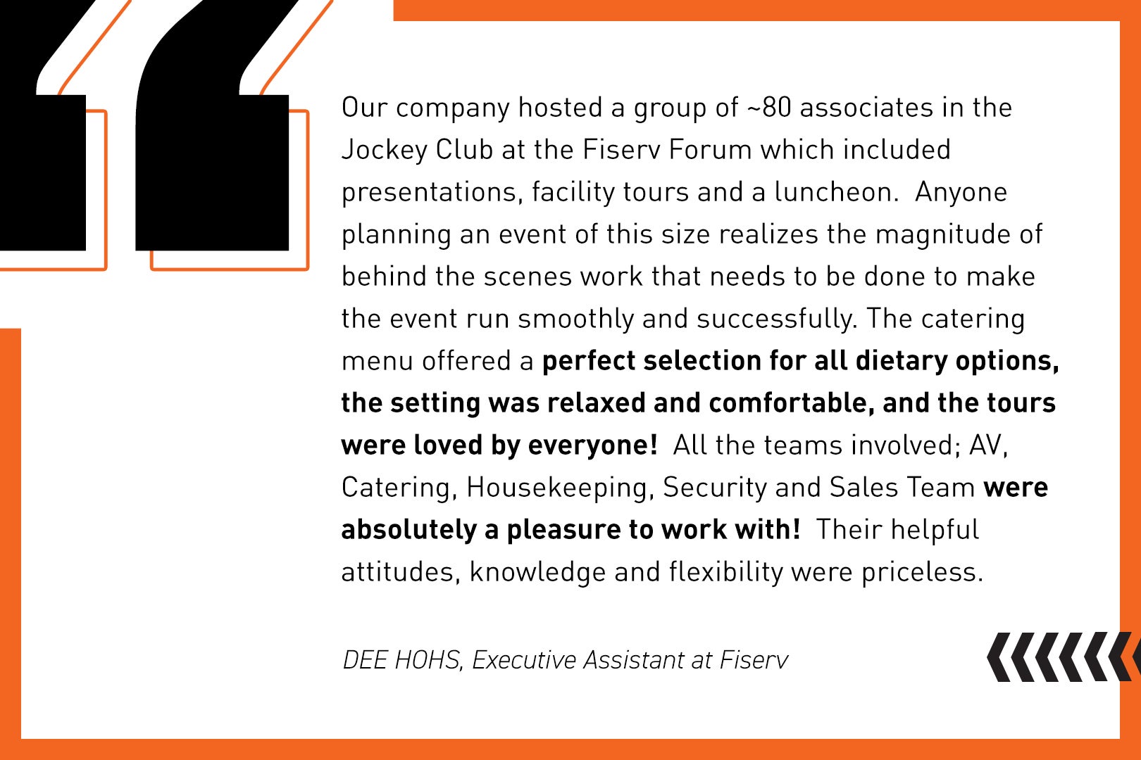 From an intimate reception to a full company meeting, Fiserv Forum has an incredible event space to host your next event. Featuring world – class culinary team, led by Executive Chef Angel Otero, a dedicated Levy representative will work with you to create a bespoke menu from Fiserv Forum MKEat’s program, which features locally – focused food and beverage.